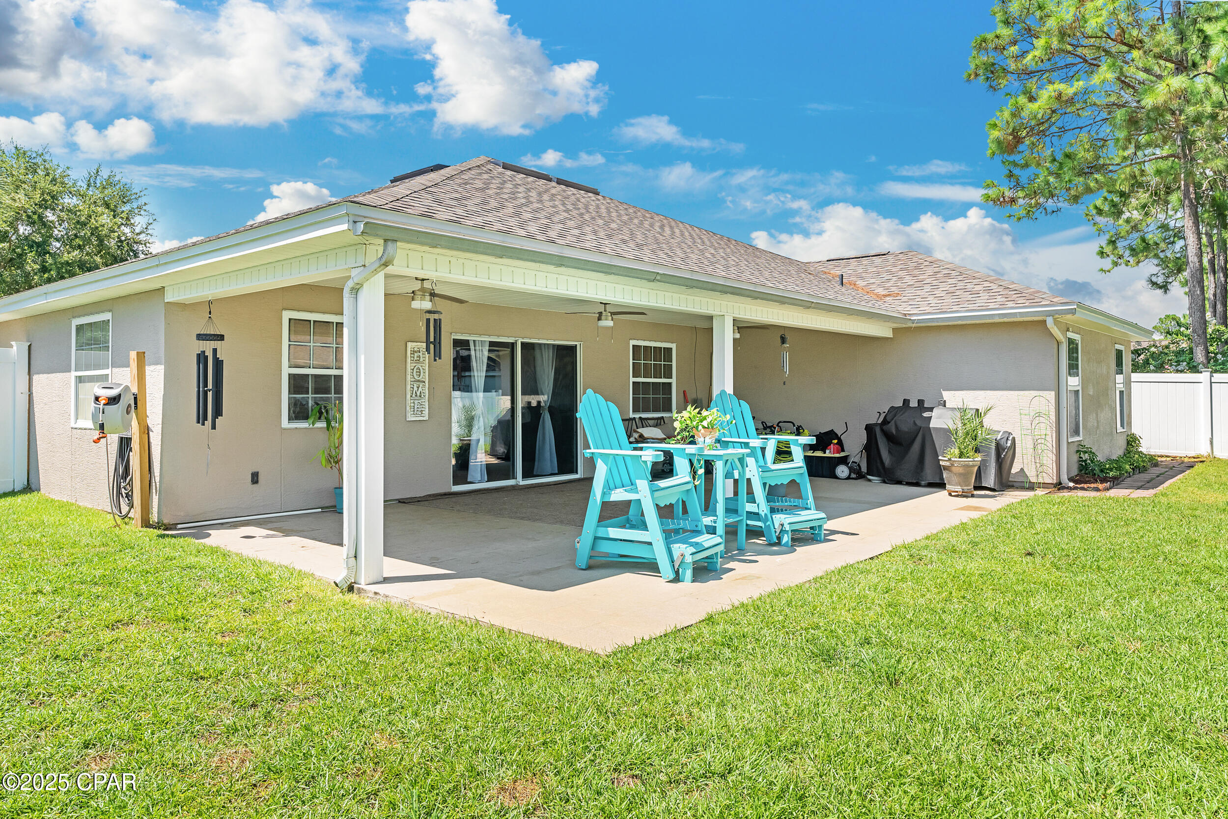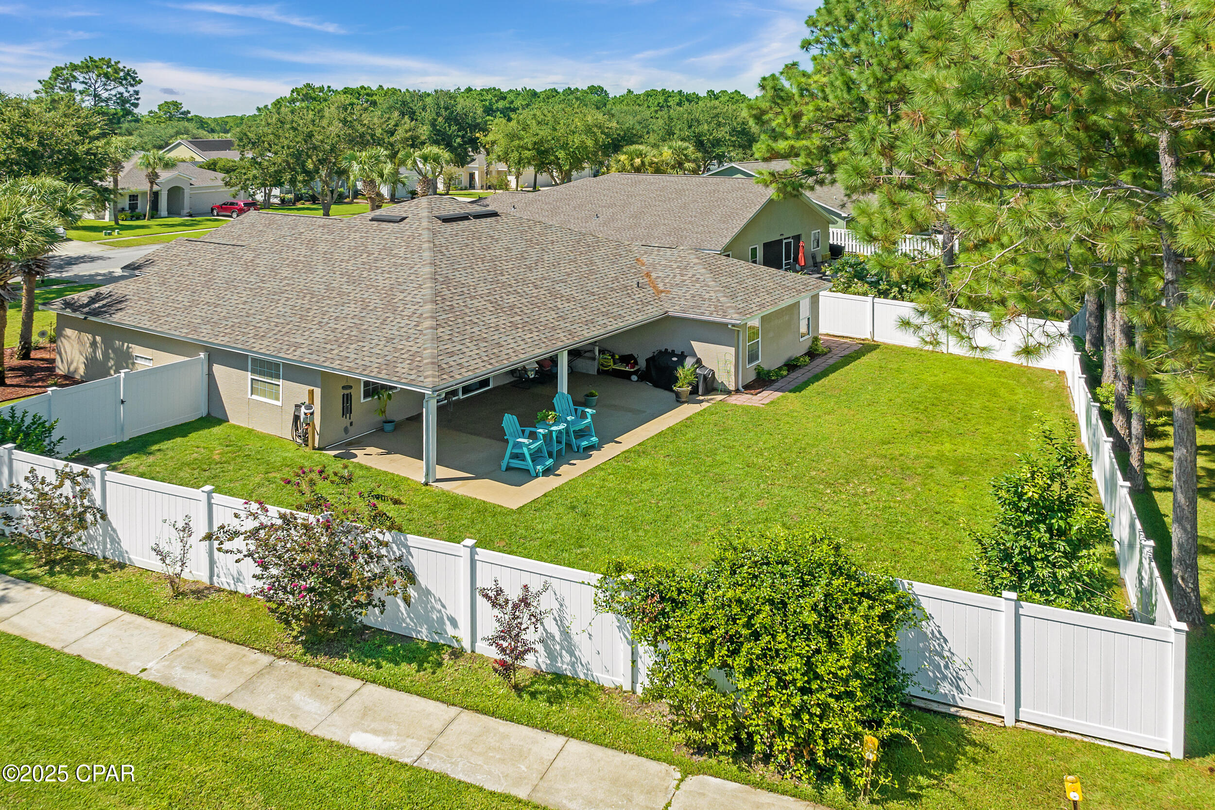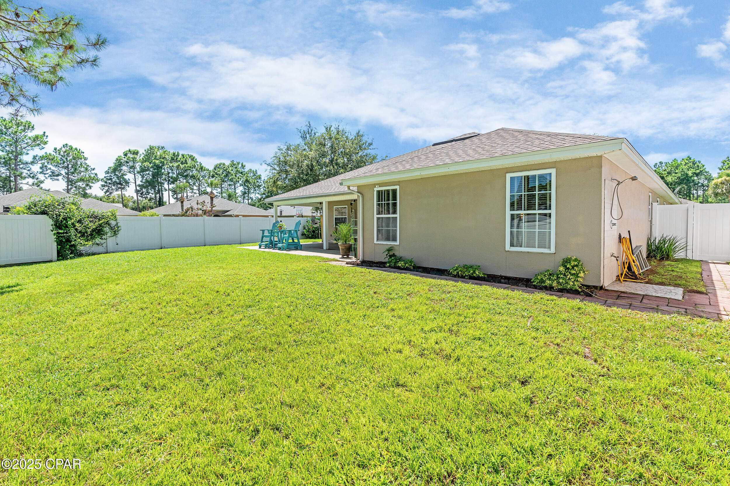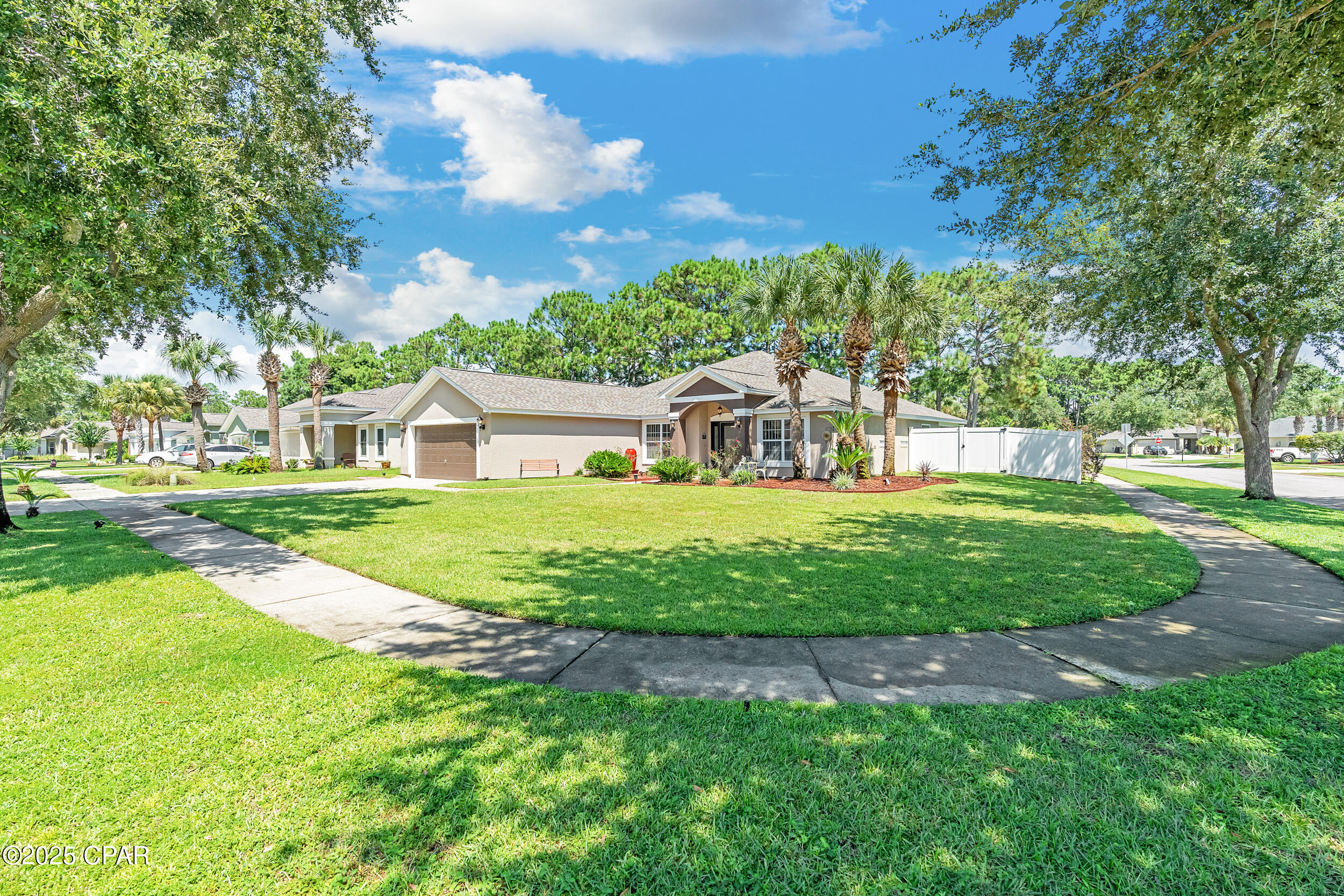 CURRENTLY UNDER CONTRACT, SELLER WILL CONSIDER BACKUP OFFERS **3.625% ASSUMABLE VA LOAN** This beautifully updated home is exceptionally maintained, move-in ready, and packed with thoughtful upgrades. Situated on a spacious .34-acre corner lot in Palmetto Trace, you're just minutes from Pier Park, Frank Brown Park, and the white sand beaches of Panama City Beach. Inside, you'll find 2,351 square feet of living space with a smart split-bedroom layout that offers both comfort and privacy. The primary suite features a large walk-in closet with built-in armoire, a garden tub, separate walk-in shower, bidet toilet, water closet, and generous linen storage. Across the home, two guest bedrooms share a full bath. Two versatile bonus rooms upfront offer endless possibilities - use them as home offices, play or media rooms, or extra guest quarters. The open-concept family room connects to the kitchen and breakfast area, all freshly painted in 2025 and designed for everyday ease and entertaining alike. The kitchen features under-cabinet lighting that brightens prep space and adds a modern touch, while a hidden outlet behind the family room TV and under the couch keeps cords tucked away. Crown moulding adds a polished finish throughout. Step outside to a fully fenced backyard oasis - professionally landscaped in 2025 and enclosed with a newer vinyl privacy fence (2023). The coated sandstone patio features three new fan/light fixtures, a hot/cold outdoor shower, and is already wired for cable TV. Additional updates include a new roof (2024) and new Trane HVAC system (2024). The oversized two-car garage is a true standout with epoxy flooring, multiple storage closets, a dedicated closet for hurricane shutters and the water heater, plus pull-down stairs leading to a large, walkable attic. Located in the golf cart-friendly community of Palmetto Trace, this home sits on a premier corner lot just across from the community pool. With low quarterly HOA dues, sidewalks, pet-friendly walking areas, and access to two resort-style pools, you can truly enjoy the best of coastal living - without ever needing to start the car. See it for yourself today!