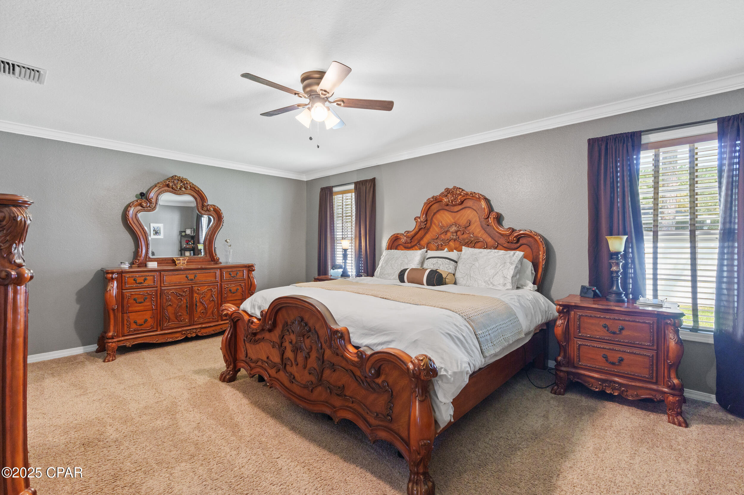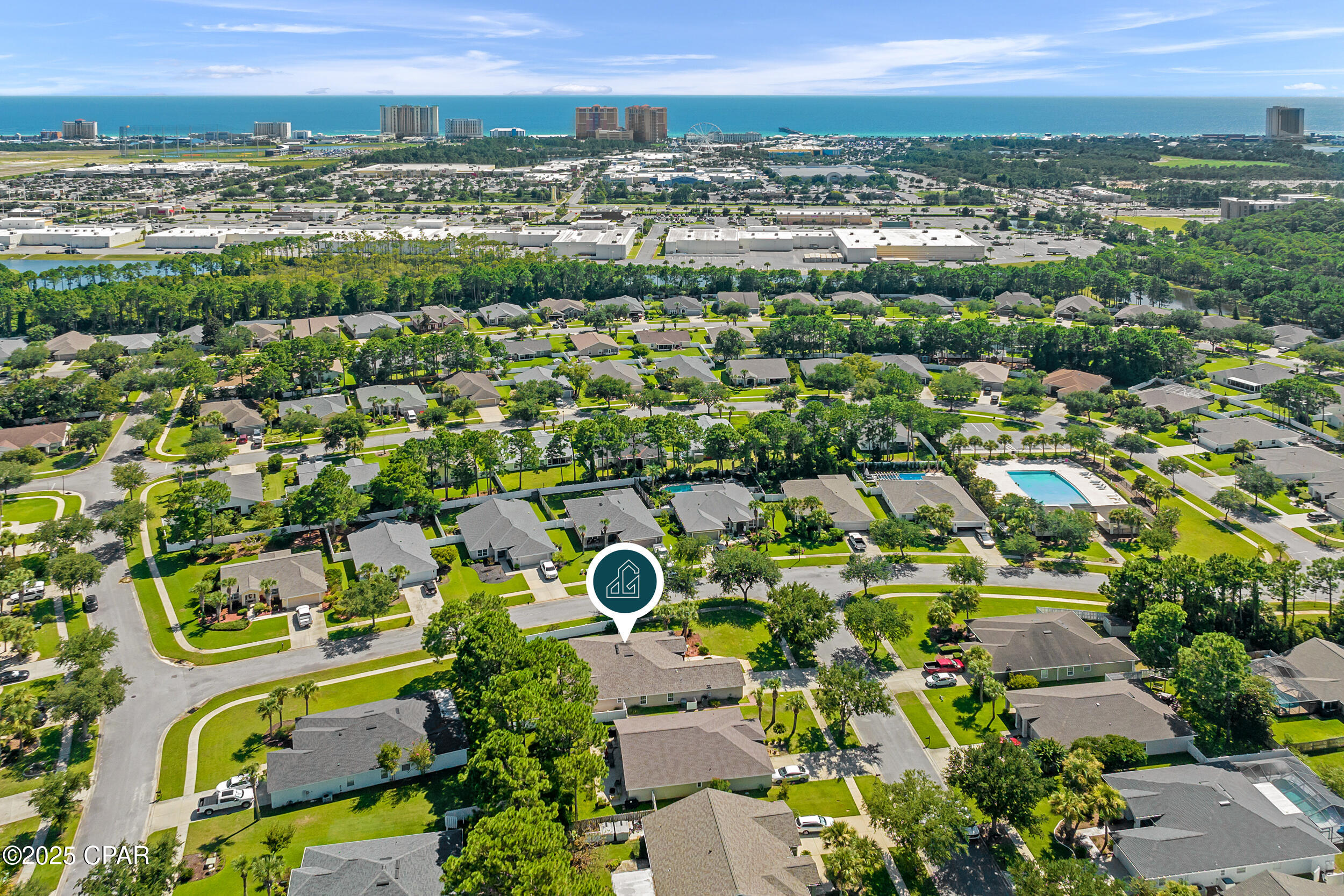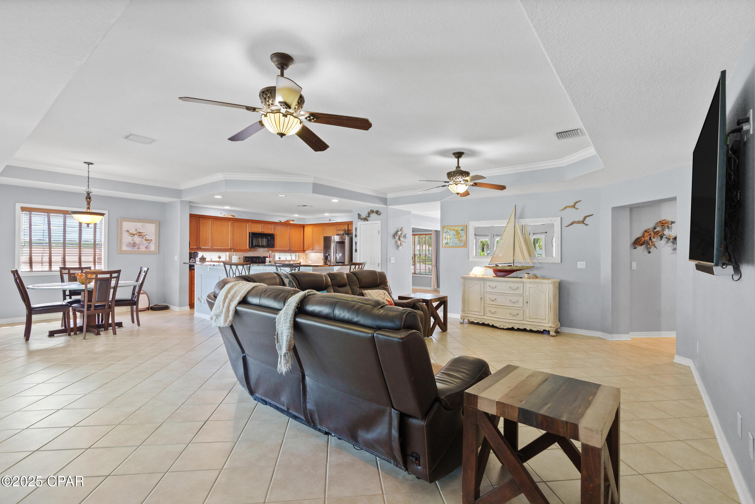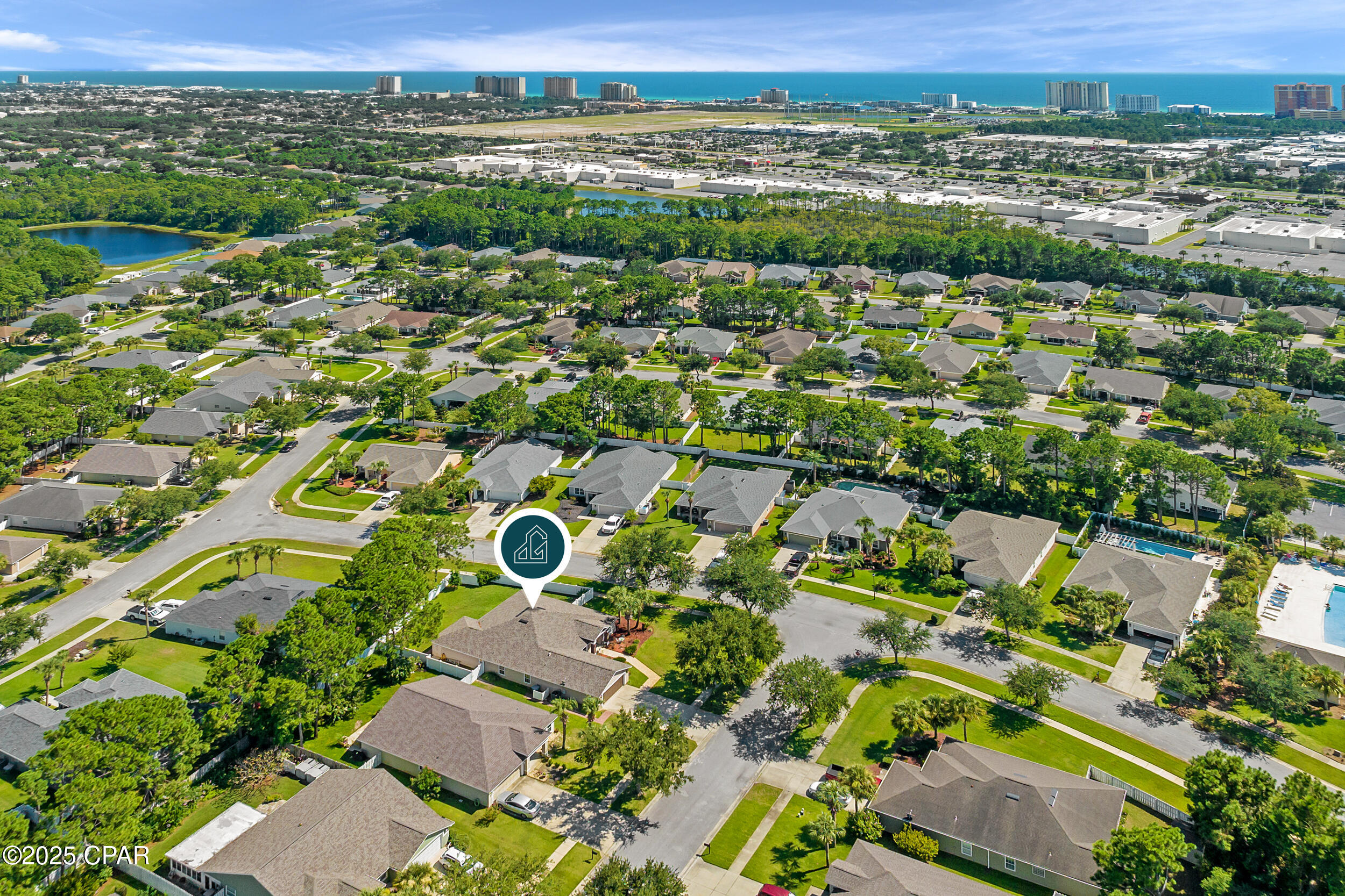 CURRENTLY UNDER CONTRACT, SELLER WILL CONSIDER BACKUP OFFERS **3.625% ASSUMABLE VA LOAN** This beautifully updated home is exceptionally maintained, move-in ready, and packed with thoughtful upgrades. Situated on a spacious .34-acre corner lot in Palmetto Trace, you're just minutes from Pier Park, Frank Brown Park, and the white sand beaches of Panama City Beach. Inside, you'll find 2,351 square feet of living space with a smart split-bedroom layout that offers both comfort and privacy. The primary suite features a large walk-in closet with built-in armoire, a garden tub, separate walk-in shower, bidet toilet, water closet, and generous linen storage. Across the home, two guest bedrooms share a full bath. Two versatile bonus rooms upfront offer endless possibilities - use them as home offices, play or media rooms, or extra guest quarters. The open-concept family room connects to the kitchen and breakfast area, all freshly painted in 2025 and designed for everyday ease and entertaining alike. The kitchen features under-cabinet lighting that brightens prep space and adds a modern touch, while a hidden outlet behind the family room TV and under the couch keeps cords tucked away. Crown moulding adds a polished finish throughout. Step outside to a fully fenced backyard oasis - professionally landscaped in 2025 and enclosed with a newer vinyl privacy fence (2023). The coated sandstone patio features three new fan/light fixtures, a hot/cold outdoor shower, and is already wired for cable TV. Additional updates include a new roof (2024) and new Trane HVAC system (2024). The oversized two-car garage is a true standout with epoxy flooring, multiple storage closets, a dedicated closet for hurricane shutters and the water heater, plus pull-down stairs leading to a large, walkable attic. Located in the golf cart-friendly community of Palmetto Trace, this home sits on a premier corner lot just across from the community pool. With low quarterly HOA dues, sidewalks, pet-friendly walking areas, and access to two resort-style pools, you can truly enjoy the best of coastal living - without ever needing to start the car. See it for yourself today!