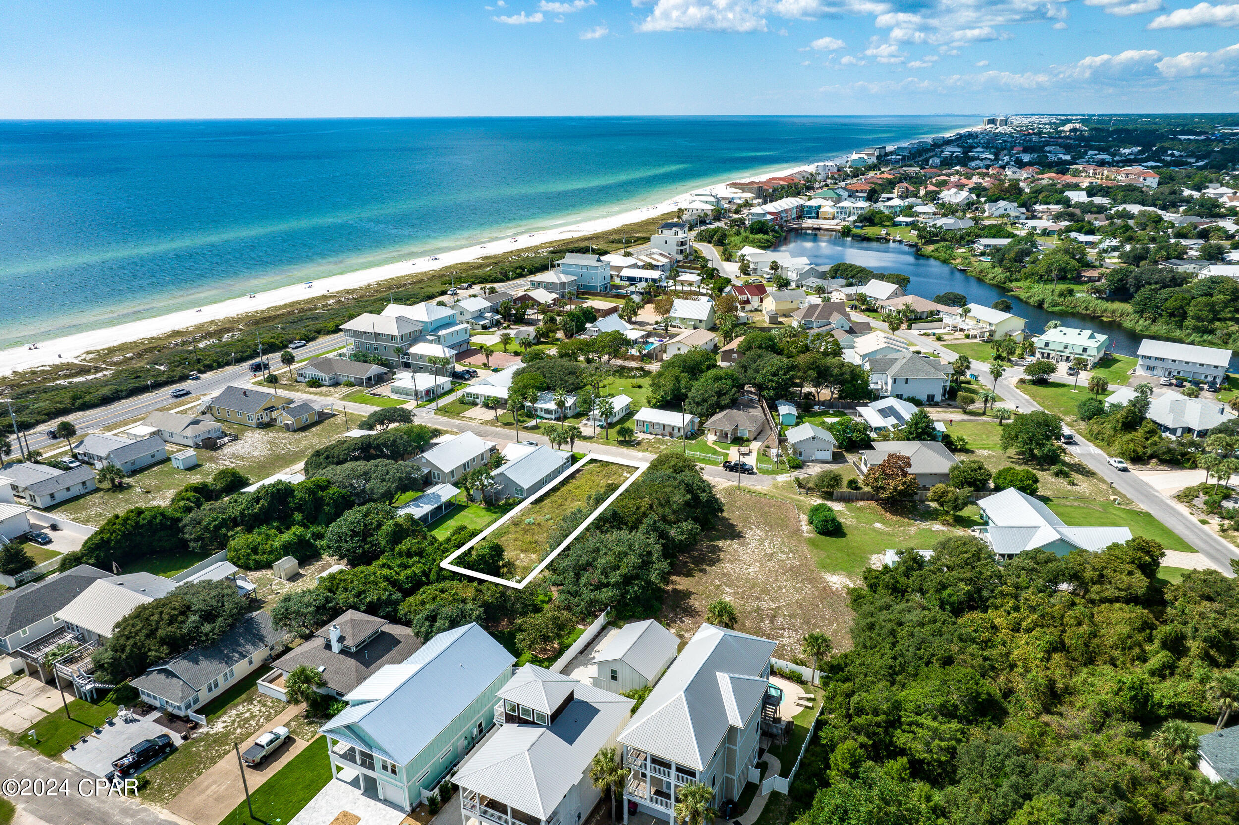 This property has sold! Discover similar listings by reaching out to us for an updated list of available properties that match your preferences. Located just steps from the sugar white sands of dedicated Sunnyside Beach, this vacant homesite if offered with a full set of approved plans for a modern, 4,300 square foot beach home. ''Dedicated Beach'' means that nothing can be built on the south side of Front Beach Road so residents of Laguna Beach can enjoy the beautiful beaches without the typical crowds you see around more dense areas of PCB. This prime location is close to 30A, Pier Park and the new 87-acre hospital site. Enjoy lower insurance costs (Flood Zone X) but still enjoy easy access to the beach! See an additional listing to purchase the lot WITH the home (pre-construction sale).