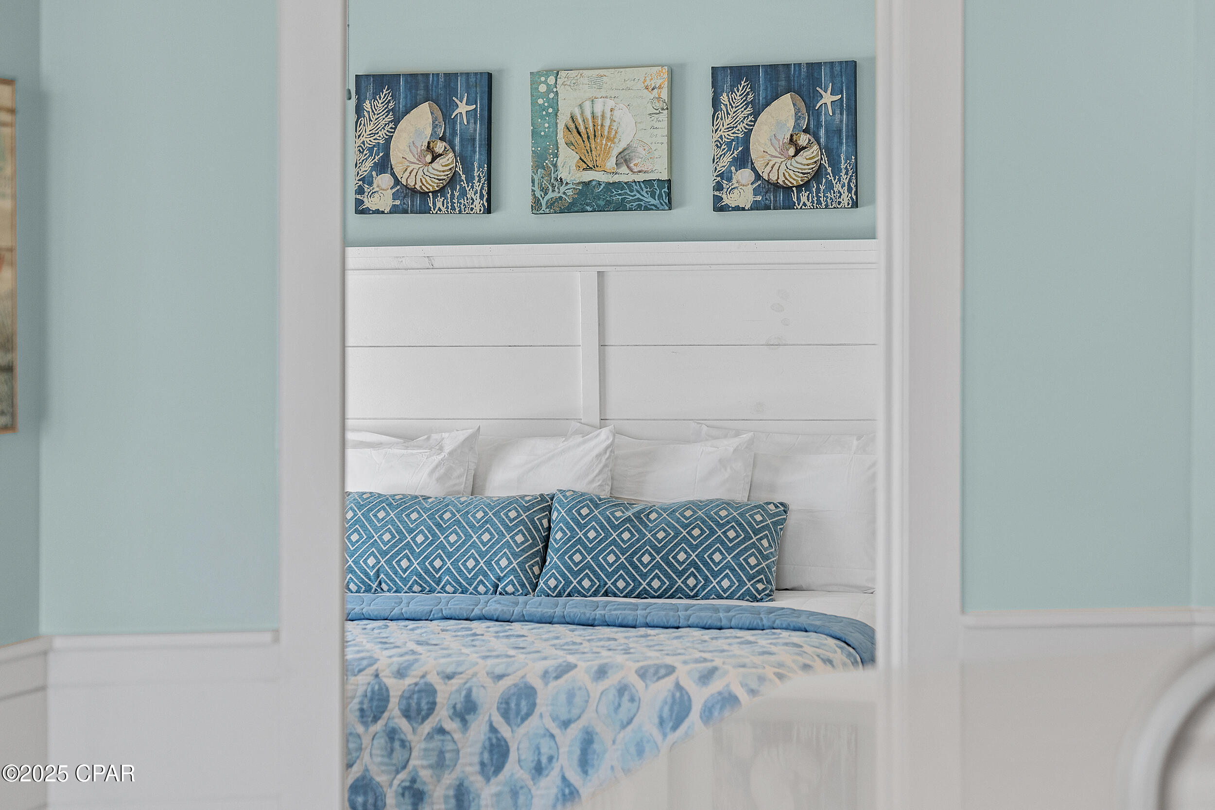 This beautifully updated 3BR/3BA end-unit condo at Calypso Tower III offers breathtaking, 180-degree unobstructed views of the Gulf and coastline from a high floor, combining privacy, serenity, and abundant natural light. The extremely large wraparound balcony stretches from the beach side to Pier Park, offering incredible vantage points in both directions. A sliding glass door from the open-concept kitchen/dining/living area provides seamless indoor-outdoor living, perfect for entertaining or relaxing while taking in the scenery. The modern kitchen features clean white cabinets, quartz countertops, stainless appliances, and a long wrap-around bar counter. More than $30,000 has been invested in upgrades, including extensive shiplap throughout and beadboard finishes in all three bathrooms, enhancing the unit's warmth and coastal charm. The gulf-view master suite opens to the balcony and includes an ensuite with a large walk-in shower. A generous laundry room adds extra convenience. Calypso Tower III offers an array of upscale amenities: a zero-entry heated pool, poolside cabanas, on-site restaurant, hot tub, expansive deck areas, fully equipped fitness center, private beach access via a covered walkway, and high-speed elevators. Just steps from City Pier and Pier Park, this condo puts dining, shopping, entertainment, and attractions like Topgolf and Dolly Parton's Pirate's Voyage within easy reach. With its wraparound balcony, proven rental appeal, prime floor level and high-end upgrades, this 3BR/3BA condo is a rare opportunity to enjoy the best of Panama City Beach.