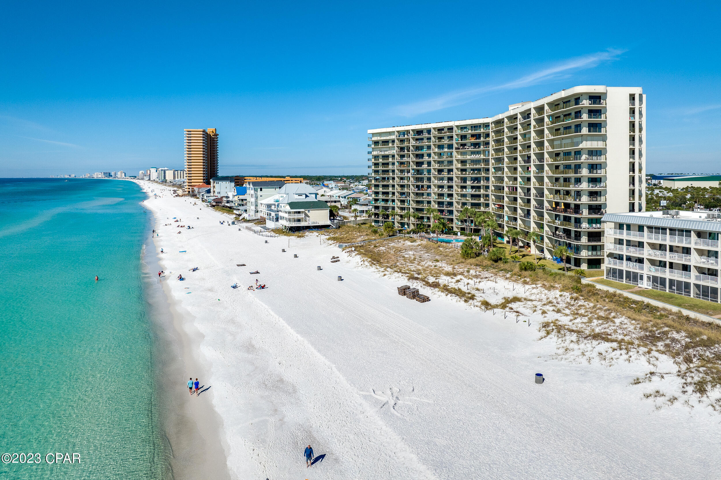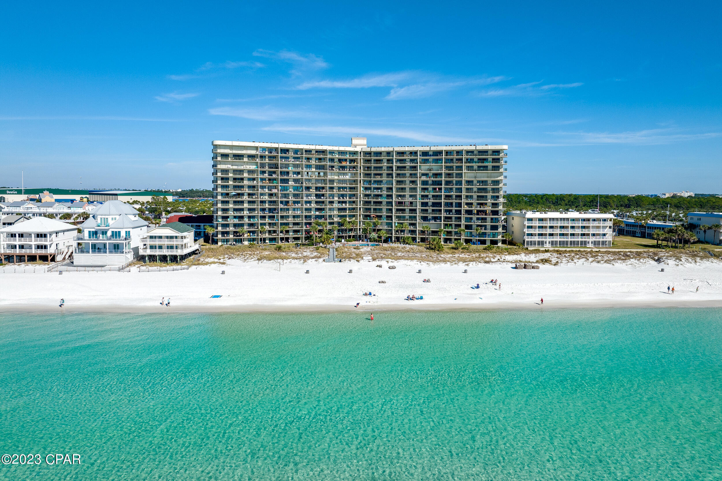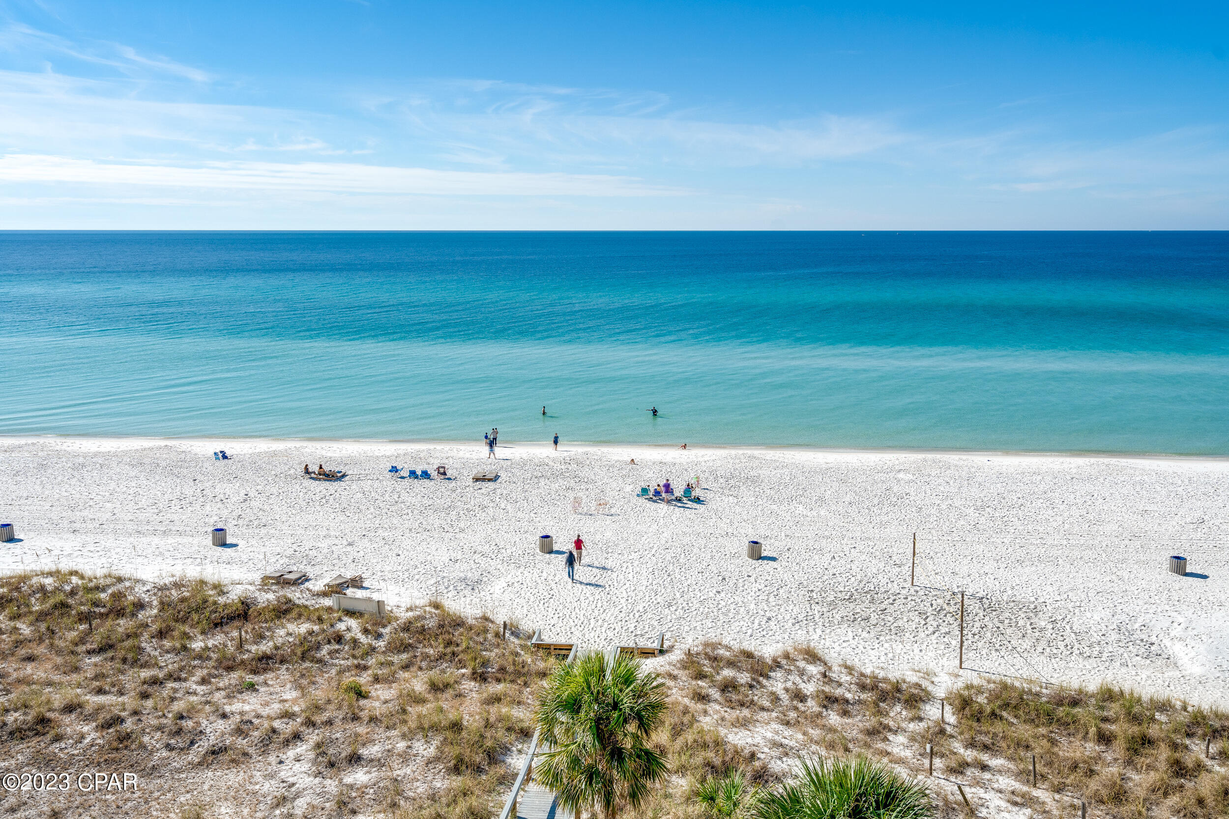 This property has sold! Discover similar listings by reaching out to us for an updated list of available properties that match your preferences. **EXCITING UPDATE: HOA DUES ARE EXPECTED TO DECREASE BY 50% IN Q3 and Q4 DUE TO A NEWLY APPROVED INSURANCE POLICY. CALL FOR DETAILS!** Discover the contemporary charm of Unit 607 at The Commodore, a modern beachfront condo with an incredible gulf view, located right on the famous white sand beaches of Panama City Beach. This fully updated unit features a stylish kitchen (remodeled in Spring 2021), new blinds, and solid flooring throughout (luxury vinyl plank flooring in the bedrooms and tile everywhere else). The essential amenities, including the A/C and water heater, were replaced in mid-2019. ensuring comfort and peace of mind. This unit comes with an external owner's storage closet, providing additional space for storing beach or personal items. The gated community offers a range of facilities such as a heated pool, kiddie pool, picnic area, shuffleboard, and basketball courts. Its location - within walking distance to St Andrews State Park - is perfect for those seeking a serene beach getaway or lucrative vacation rental. With both privacy and direct beach access, this condo offers the best of beachfront living, or vacation. Don't miss the chance to see this incredible condo, call today!