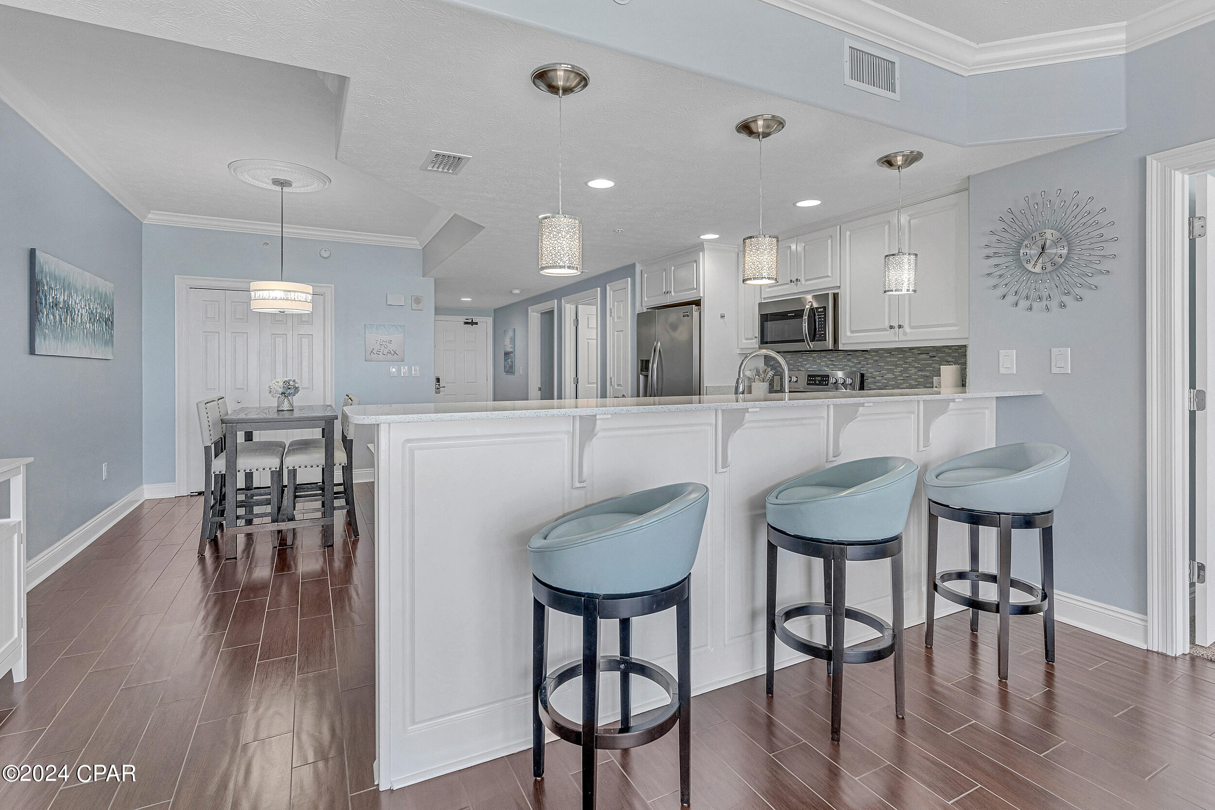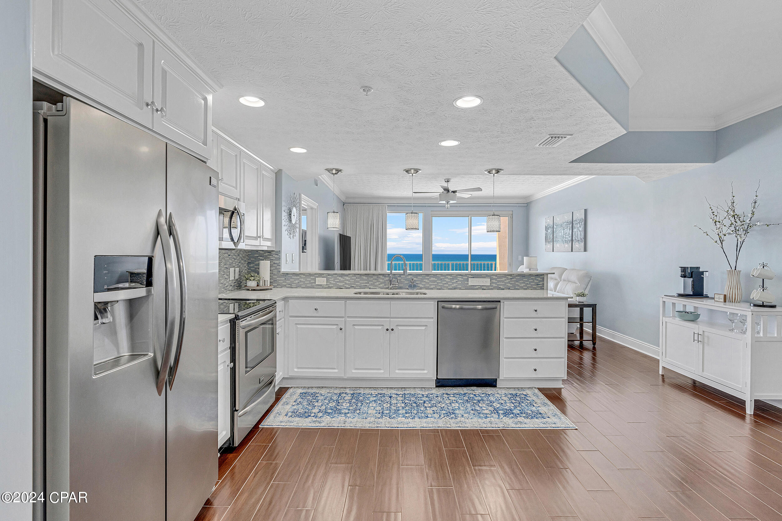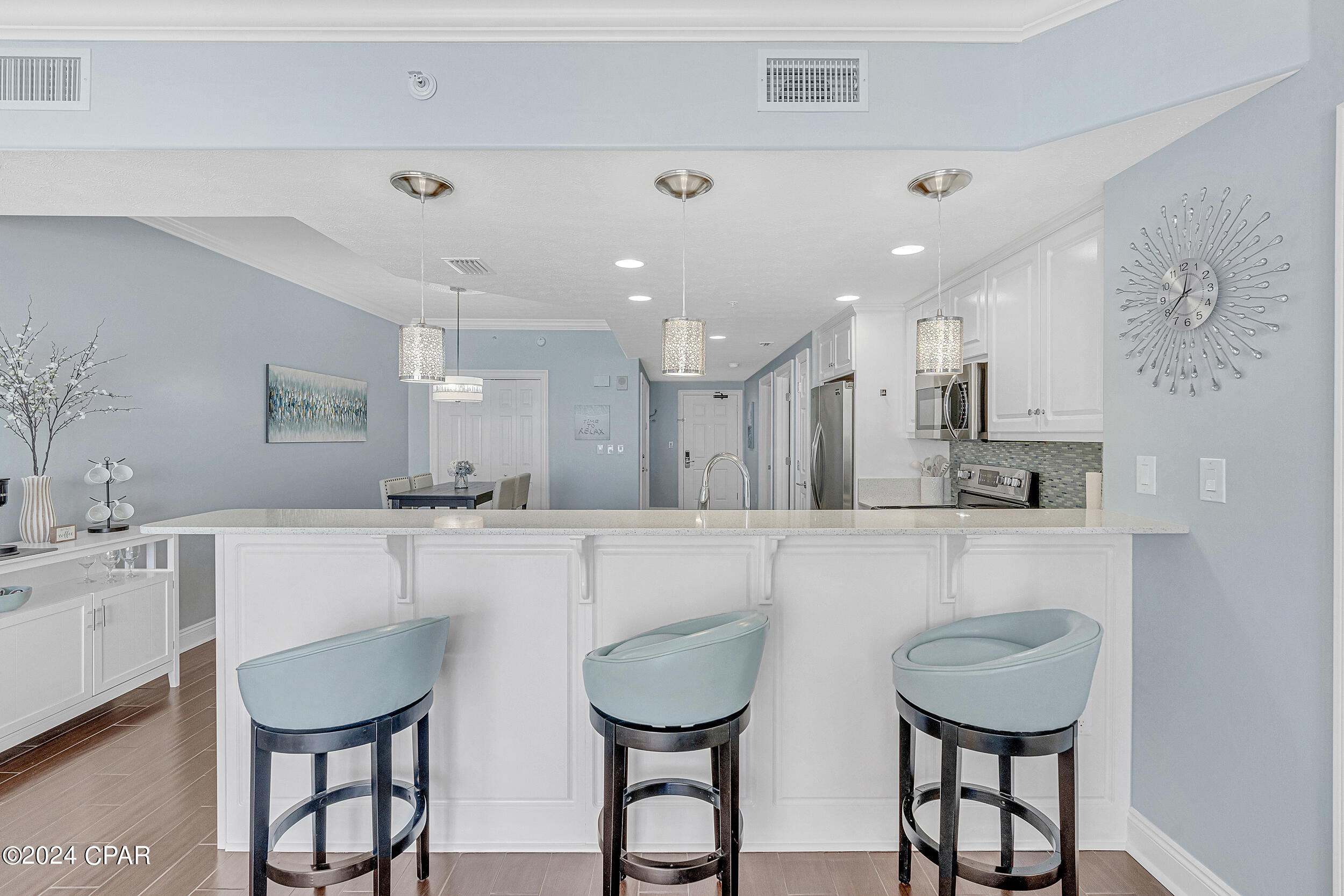 **THIS CONDO HAS NOT BEEN RENTED SO IN IN EXCELLENT CONDITION** This is one of the cleanest, well-maintained condos I have seen in Panama City Beach in some time. The 2BR/2BA condos at Treasure Island are larger than your average 2BR condo featuring large kitchens, bedrooms and balconies. This impressive condo is offered fully-furnished and is loaded with upgrades. This has been a primary residence for 9 years so has been extremely well cared for and it shows. The countertops have been upgraded to quartz, the entire condo was just painted, door hardware and cover plates are all new, the cabinets are newly painted and the master shower is upgraded. The microwave, dishwasher, washing machine and hall bath toilet are all newer, lighting has been upgraded and there are even luxurious blackout curtains in the living room. The sellers have stocked the condo to be ready to rent or enjoy with NEW pots. pans, flatware and more...the labels are still on. Treasure Island is on the far east end of Panama City Beach close to St. Andrews State Park and Schooners and has dedicated parking, a fitness center, gas grills, a dog walk, gazebo and impressive gulf-front pool and hot tub. Make it a point to put this beautiful condo on your list to see today.