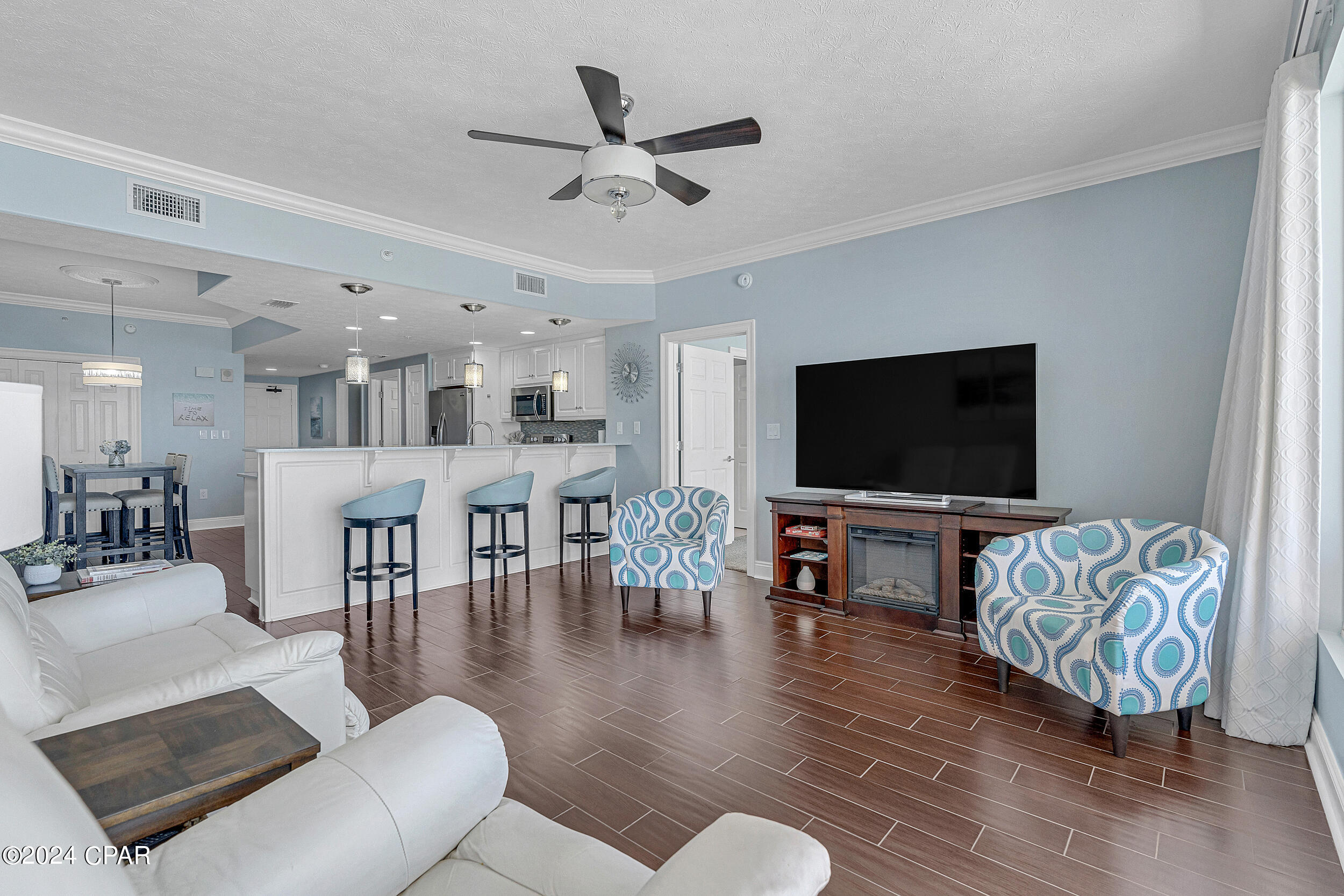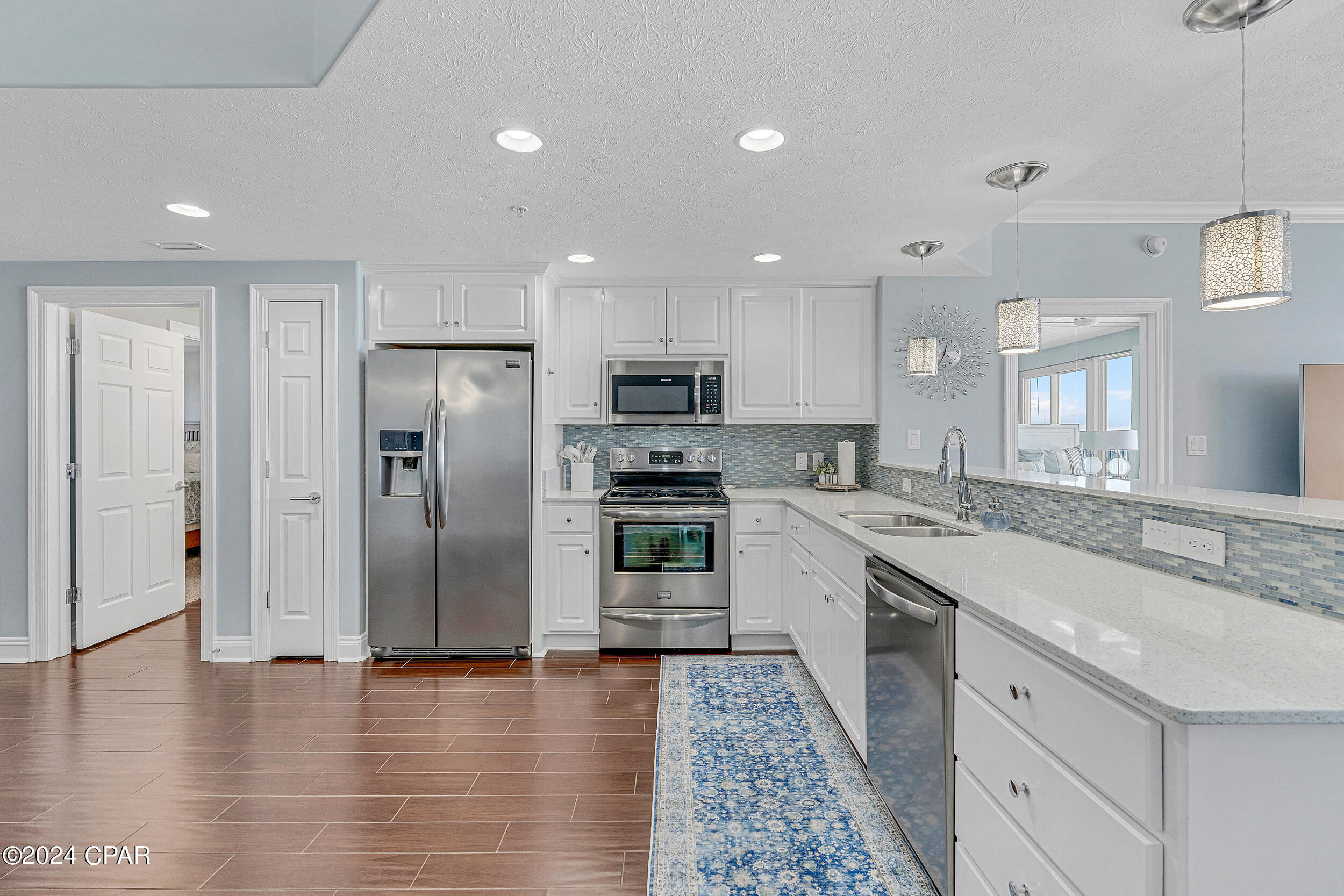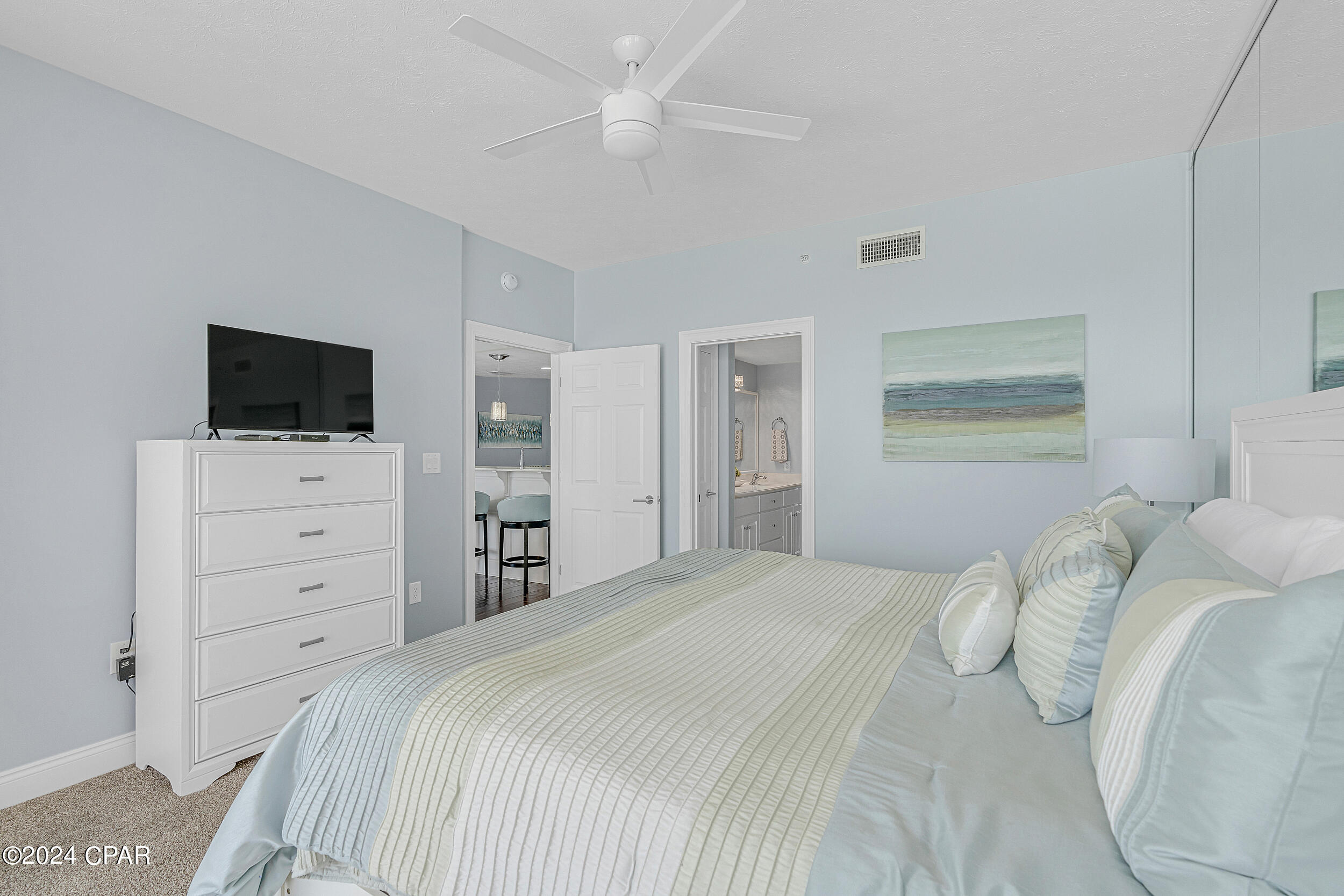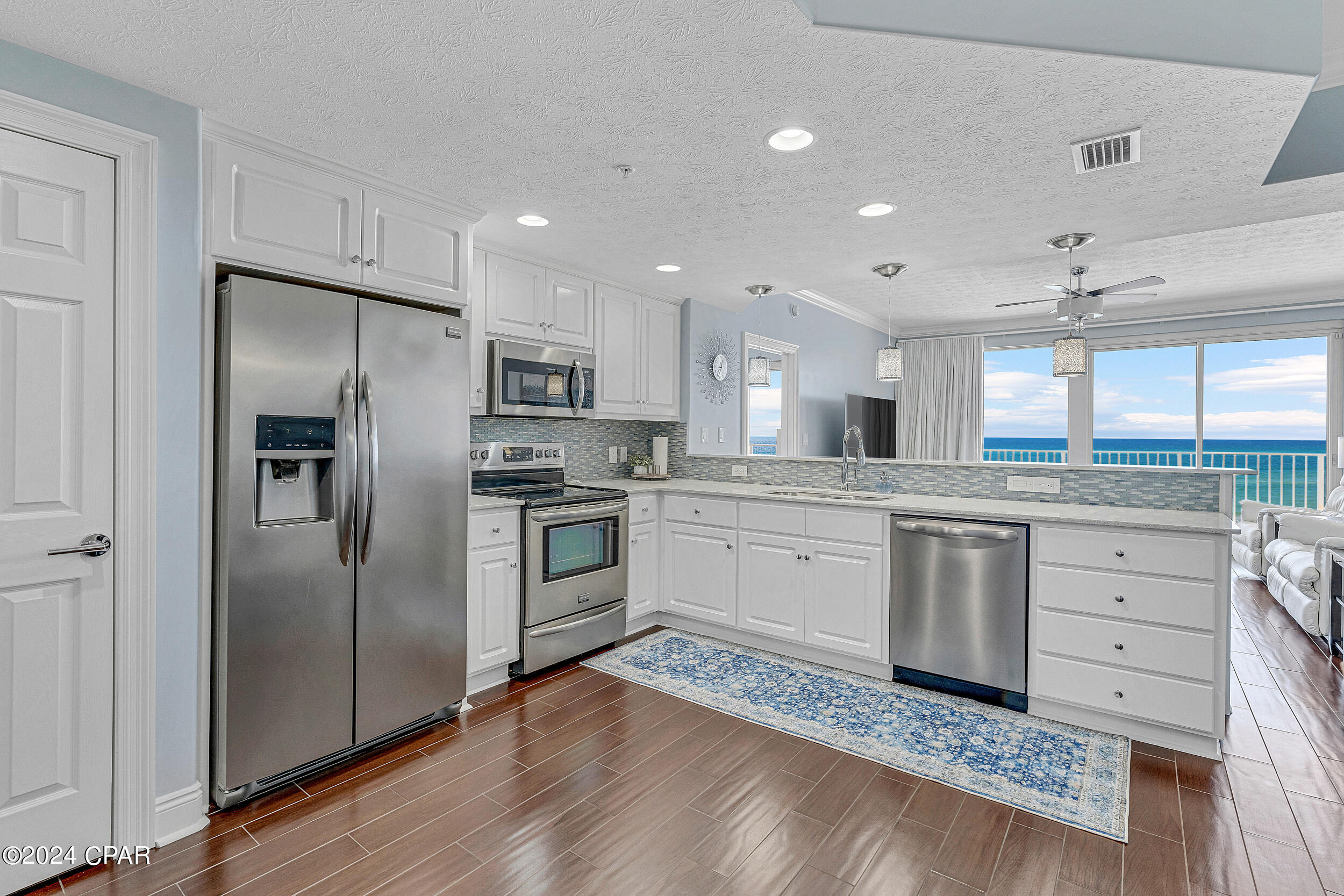 **THIS CONDO HAS NOT BEEN RENTED SO IN IN EXCELLENT CONDITION** This is one of the cleanest, well-maintained condos I have seen in Panama City Beach in some time. The 2BR/2BA condos at Treasure Island are larger than your average 2BR condo featuring large kitchens, bedrooms and balconies. This impressive condo is offered fully-furnished and is loaded with upgrades. This has been a primary residence for 9 years so has been extremely well cared for and it shows. The countertops have been upgraded to quartz, the entire condo was just painted, door hardware and cover plates are all new, the cabinets are newly painted and the master shower is upgraded. The microwave, dishwasher, washing machine and hall bath toilet are all newer, lighting has been upgraded and there are even luxurious blackout curtains in the living room. The sellers have stocked the condo to be ready to rent or enjoy with NEW pots. pans, flatware and more...the labels are still on. Treasure Island is on the far east end of Panama City Beach close to St. Andrews State Park and Schooners and has dedicated parking, a fitness center, gas grills, a dog walk, gazebo and impressive gulf-front pool and hot tub. Make it a point to put this beautiful condo on your list to see today.