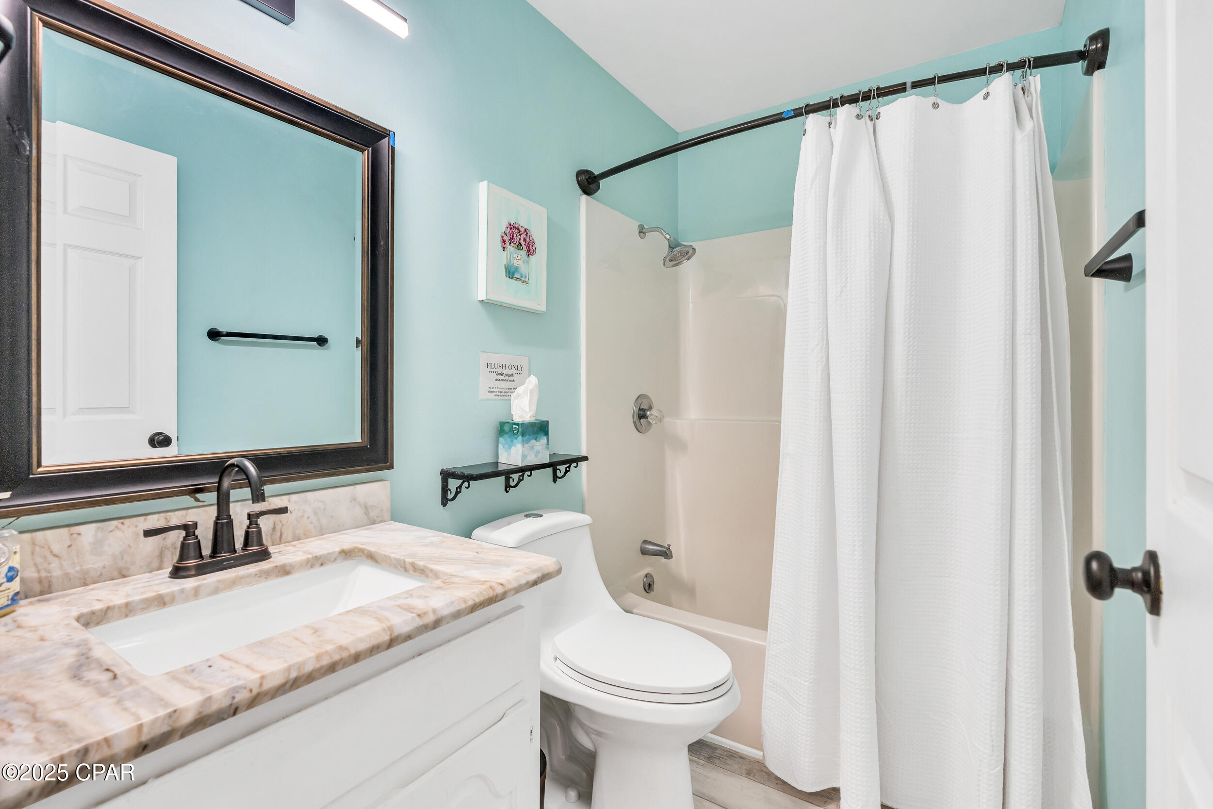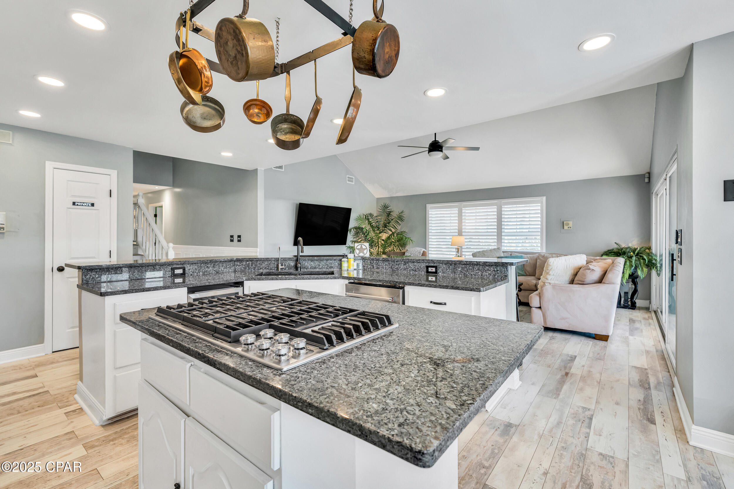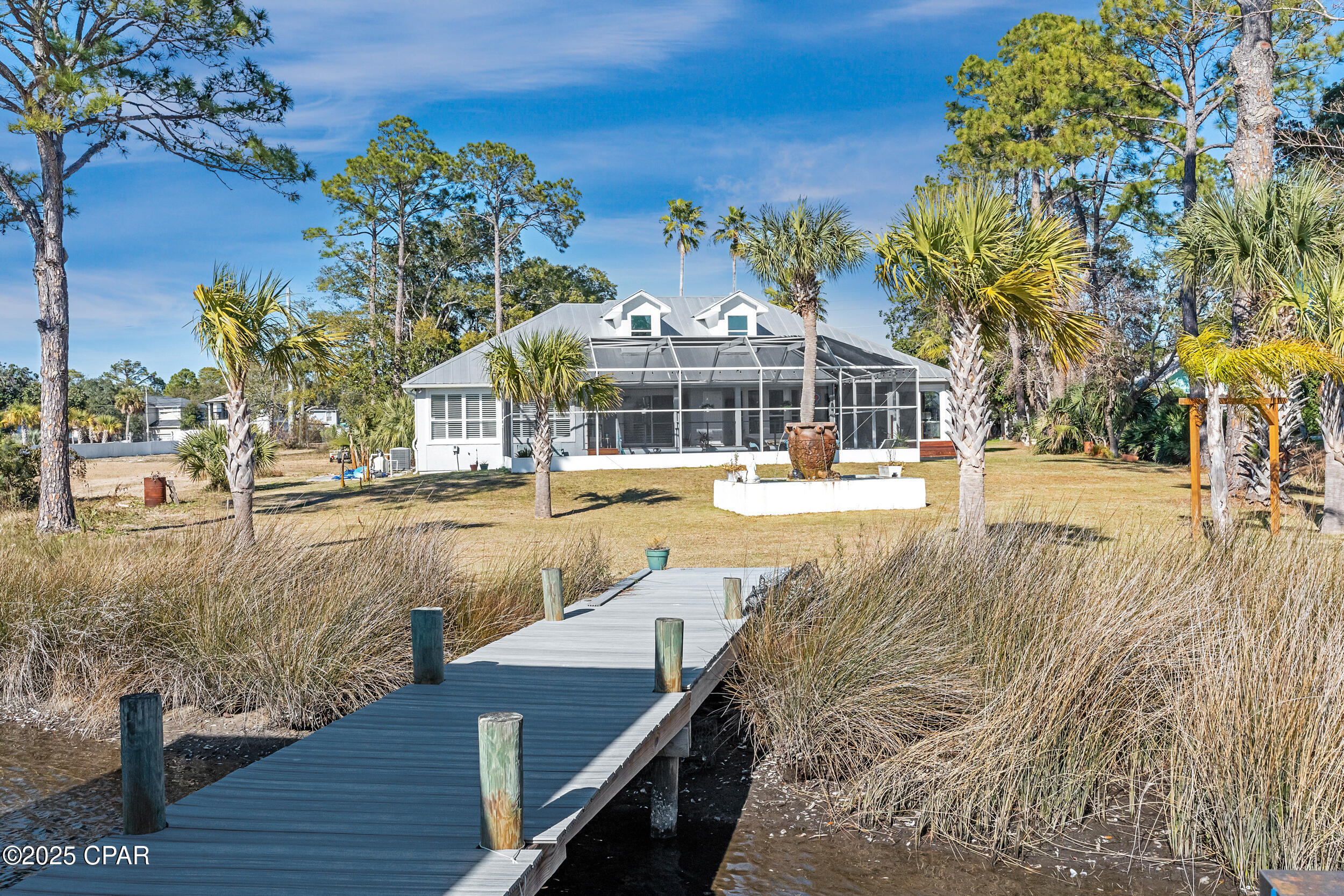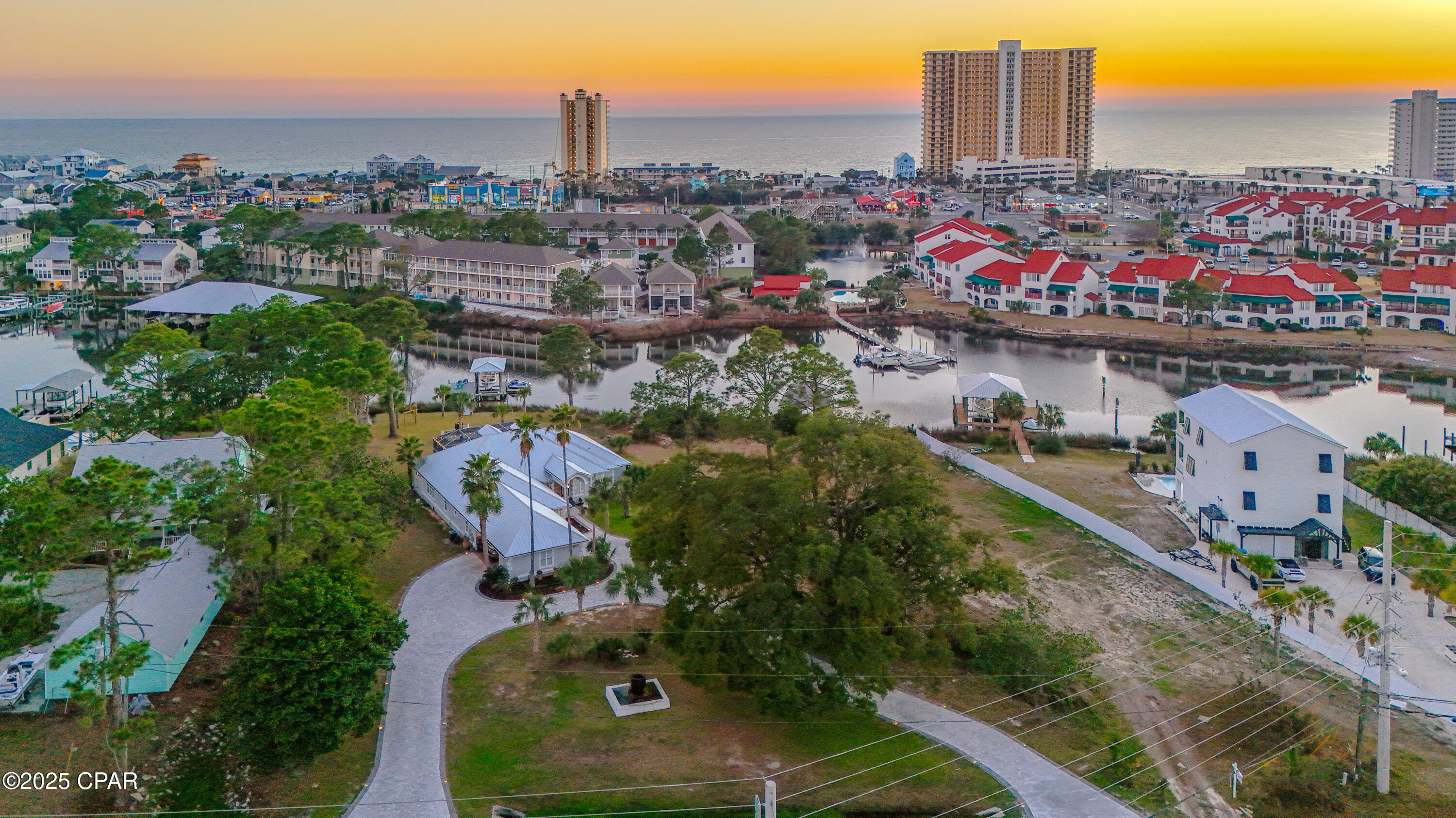 **WATERFRONT WITH GULF ACCESS** PRICED TO MOVE** ALL UPDATES DONE IN THE LAST THREE YEARS** Tucked away beneath a breathtaking canopy of towering Live Oaks, this exceptional waterfront estate creates a dramatic and lasting first impression. Offering the rare combination of private Gulf access and proximity to the beach, it provides the best of both worlds - launch your boat from your own dock or take a short stroll to Panama City Beach's sugar-white sands via Beach Access 24. Despite its serene waterfront setting, this home is located in the heart of PCB, keeping you just minutes from the area's best dining, shopping, and entertainment. A beautifully designed circular driveway, finished with high-end pavers and framed by lush greenery, sets the stage for the elegance within. Step inside to a refined yet inviting interior, where vaulted ceilings and an open-concept layout enhance the sense of space and light. Luxury vinyl plank flooring flows seamlessly throughout, leading to five generously sized bedrooms - each with a private bath featuring quartz counters, marble tile, and shiplap accents. The master suite is a true sanctuary, boasting a spa-like bath with a marble soaking tub and a walk-in glass shower. The kitchen impresses with an oversized island and bar, marble counters, stainless appliances, ample cabinets, and a striking ceiling pot rack, all offering style and functionality. A charming breakfast nook overlooks the lagoon and resort-style enclosed pool area, complete with a cabana, bath, and outdoor kitchen - perfect for effortless alfresco entertaining. The expansive backyard is a true waterfront oasis, offering plenty of space to relax, entertain, fish off the dock, or simply take in the views. Beyond, an updated boat dock with a 12,000 lb lift invites you to explore the area, with the Gulf just minutes away via the iconic Grand Lagoon. This is more than just a house - it's a dream home where lifelong memories are made. With short-term rentals allowed and no HOA, you'll have the flexibility to make it your full-time residence while still having options for the future. Schedule your private tour today and experience the best of Panama City Beach living.