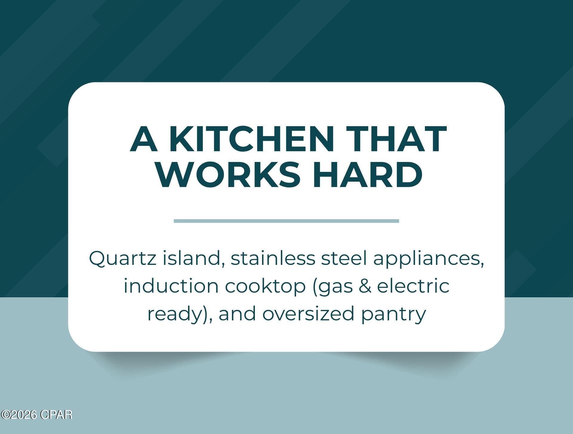 The open-concept design connects the family room and dining area seamlessly to the gourmet kitchen, creating a bright, central gathering space. An oversized pantry with custom shelving, quartz island, stainless appliances, abundant cabinetry, and an induction cooktop (with both gas and electric connections in place) provide flexibility and performance for everyday living or entertaining.